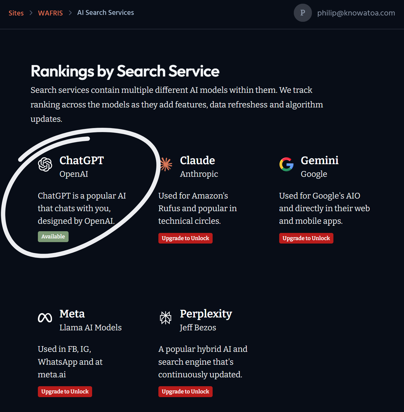 From your Knowatoa dashboard, navigate to the Rankings tab and click on any Search that is currently “Available”